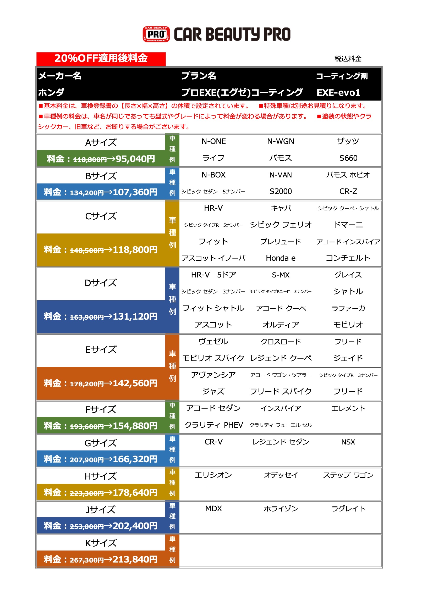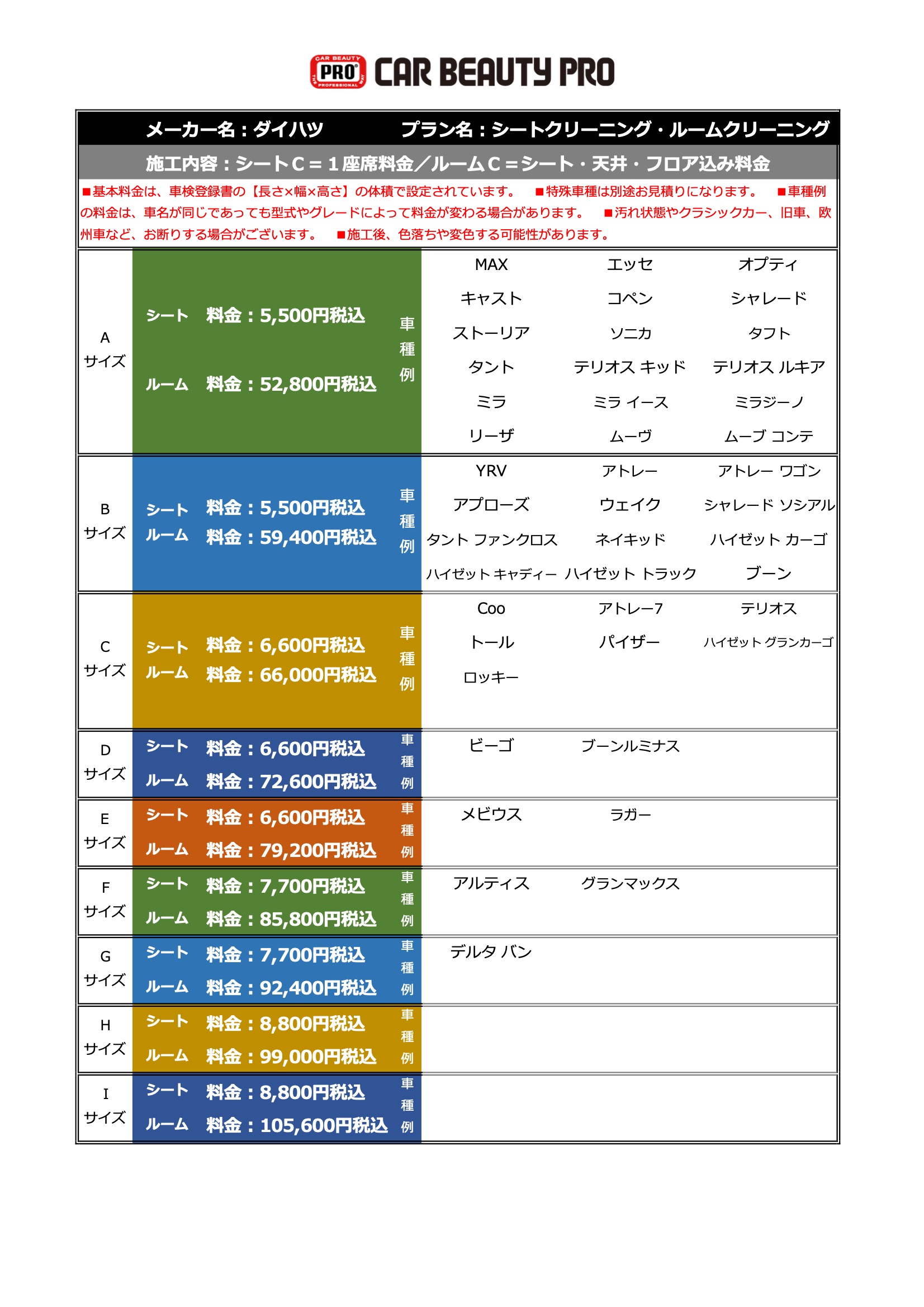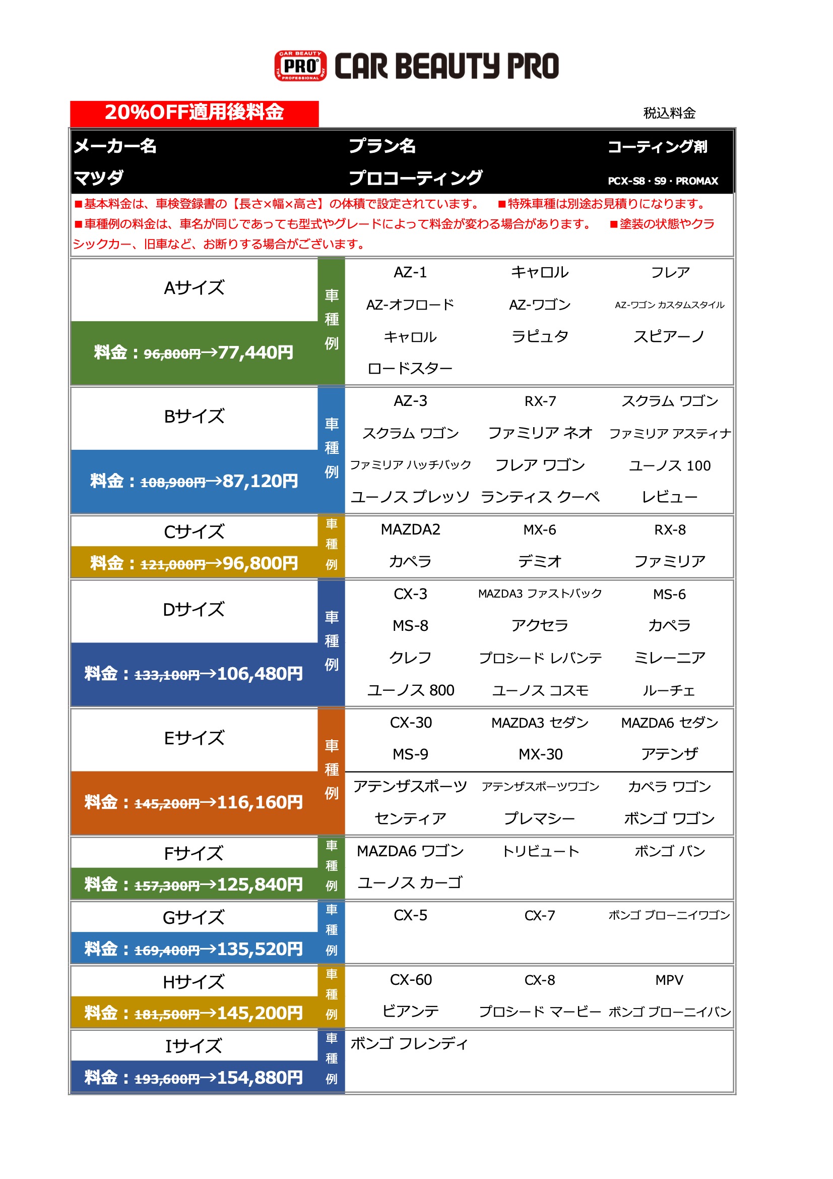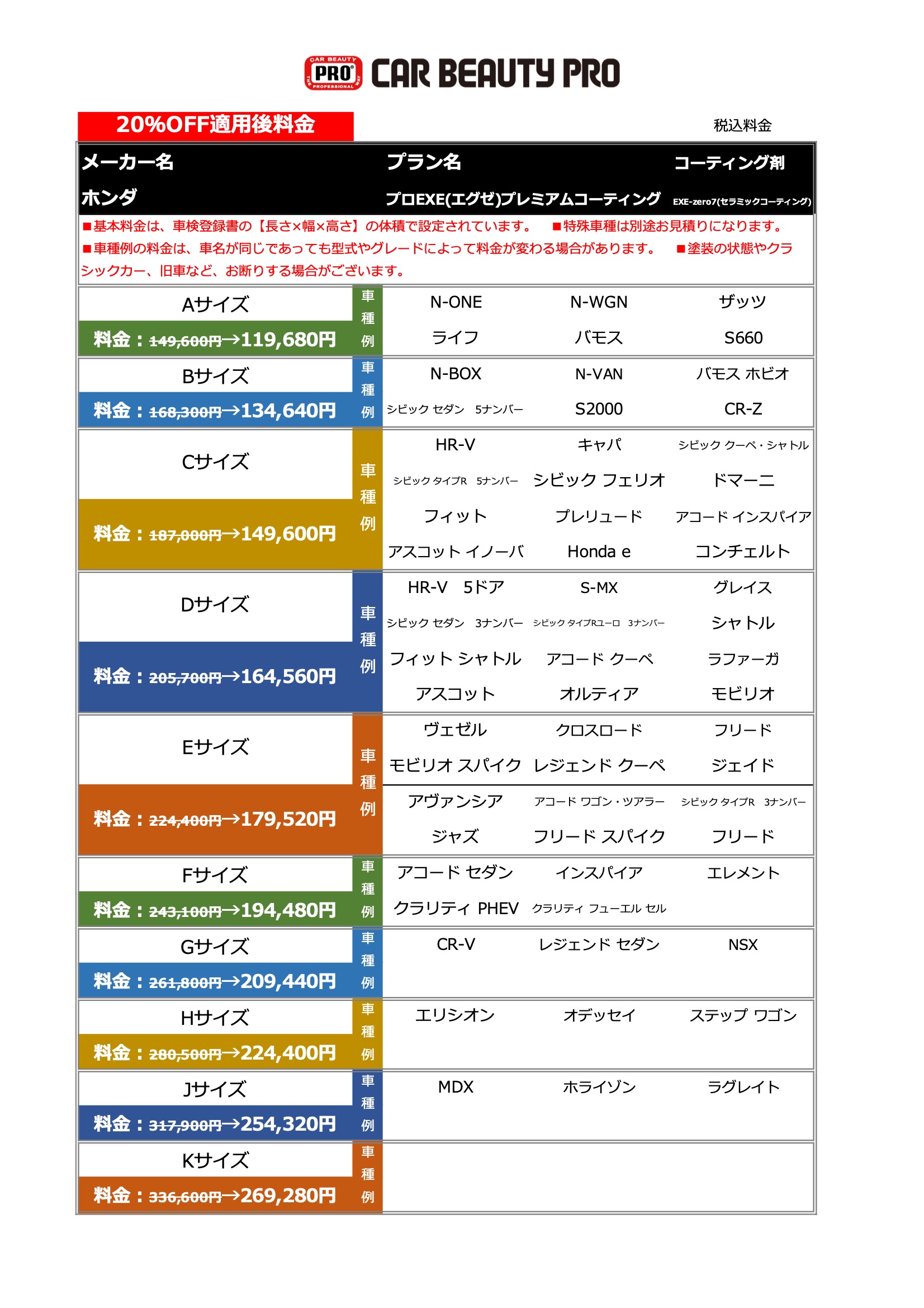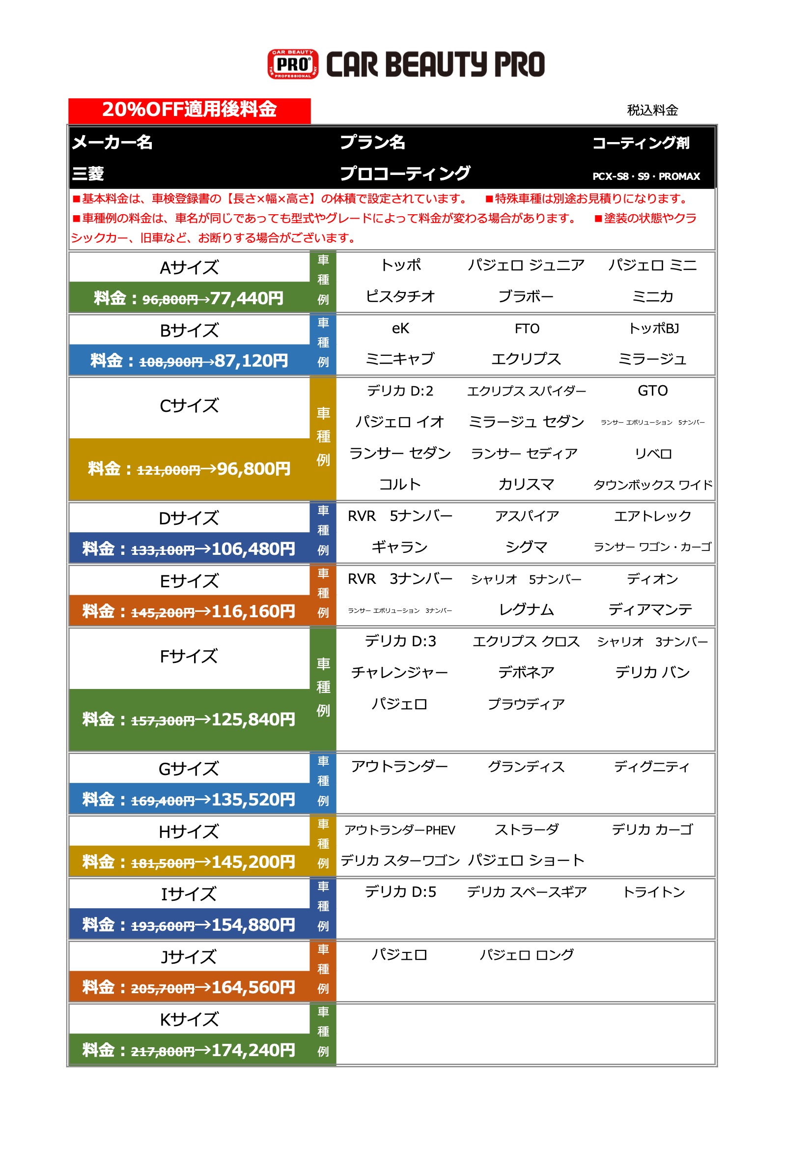 サービスの種類をお選びください プロコーティングプロEXE(エグゼ)コーティングプロEXE(エグゼ)プレミアムコーティングプロルームクリーニングプロ防錆コート(アンダーコート)プロ防錆コート(ボディコート)プロ防錆コート(フルコート)
