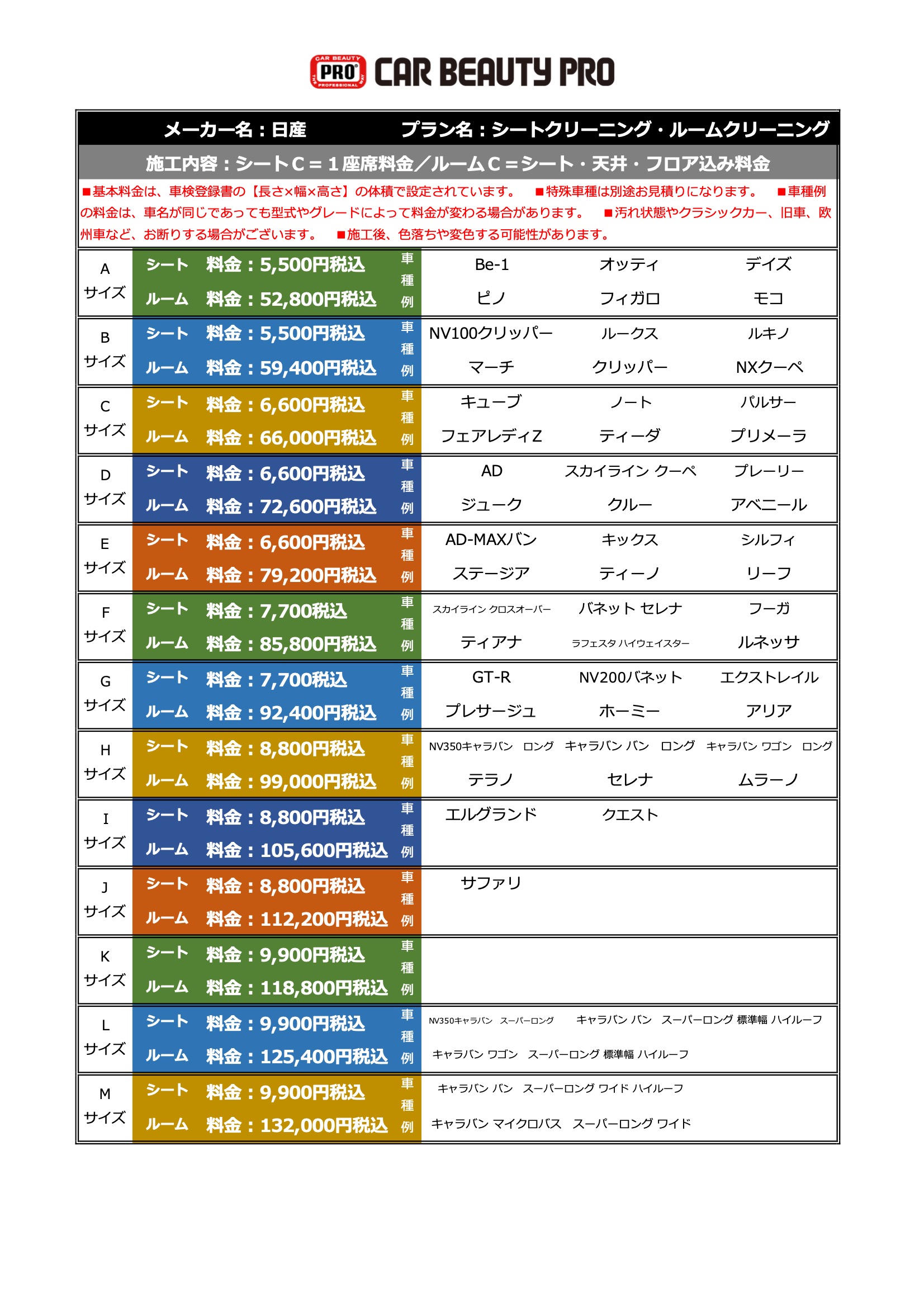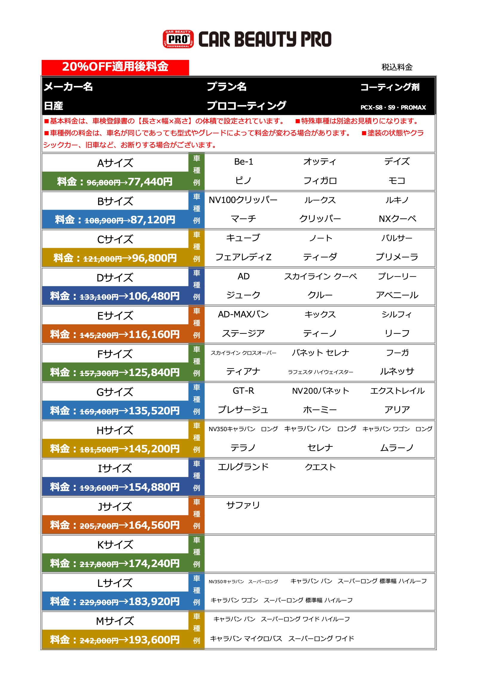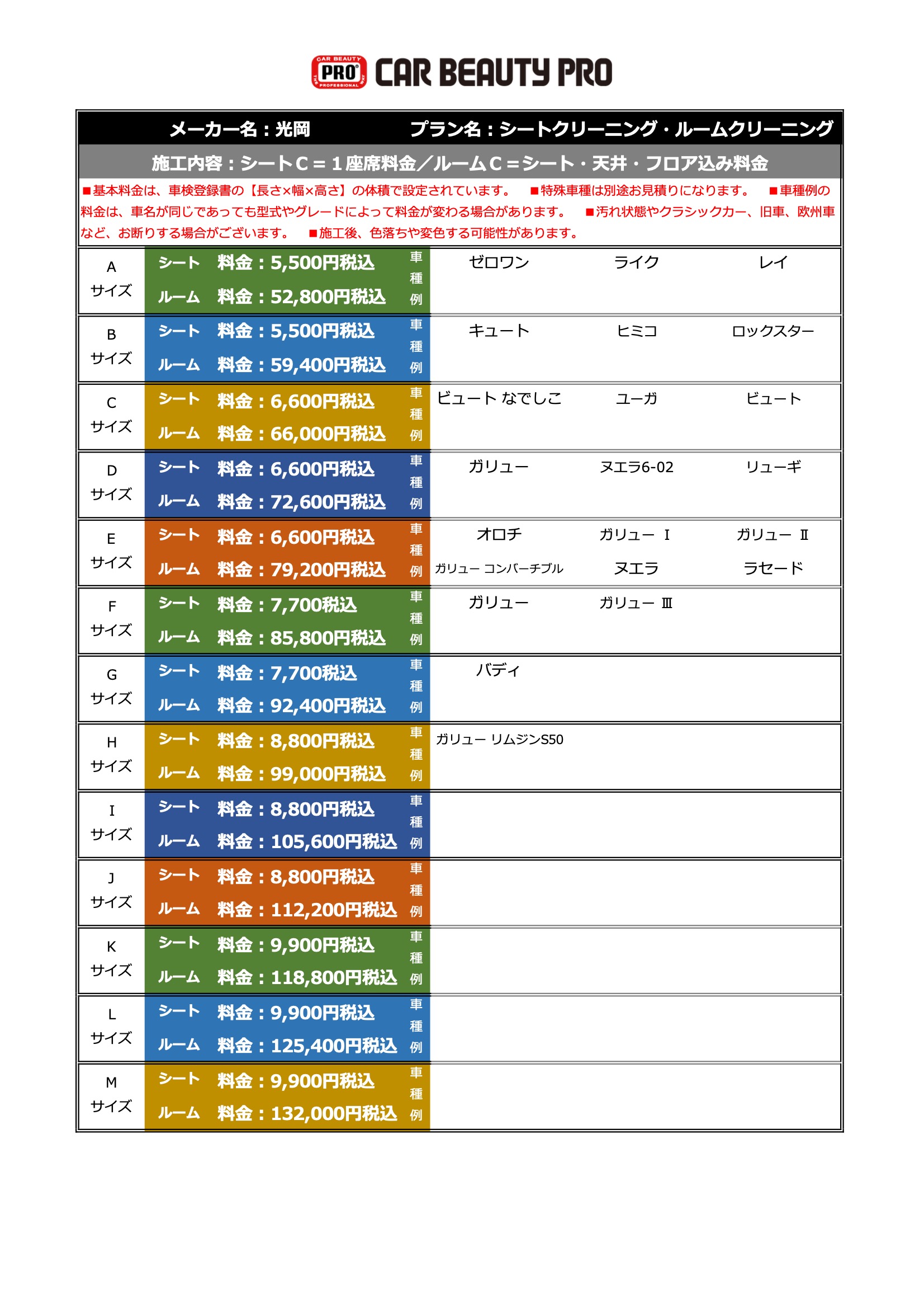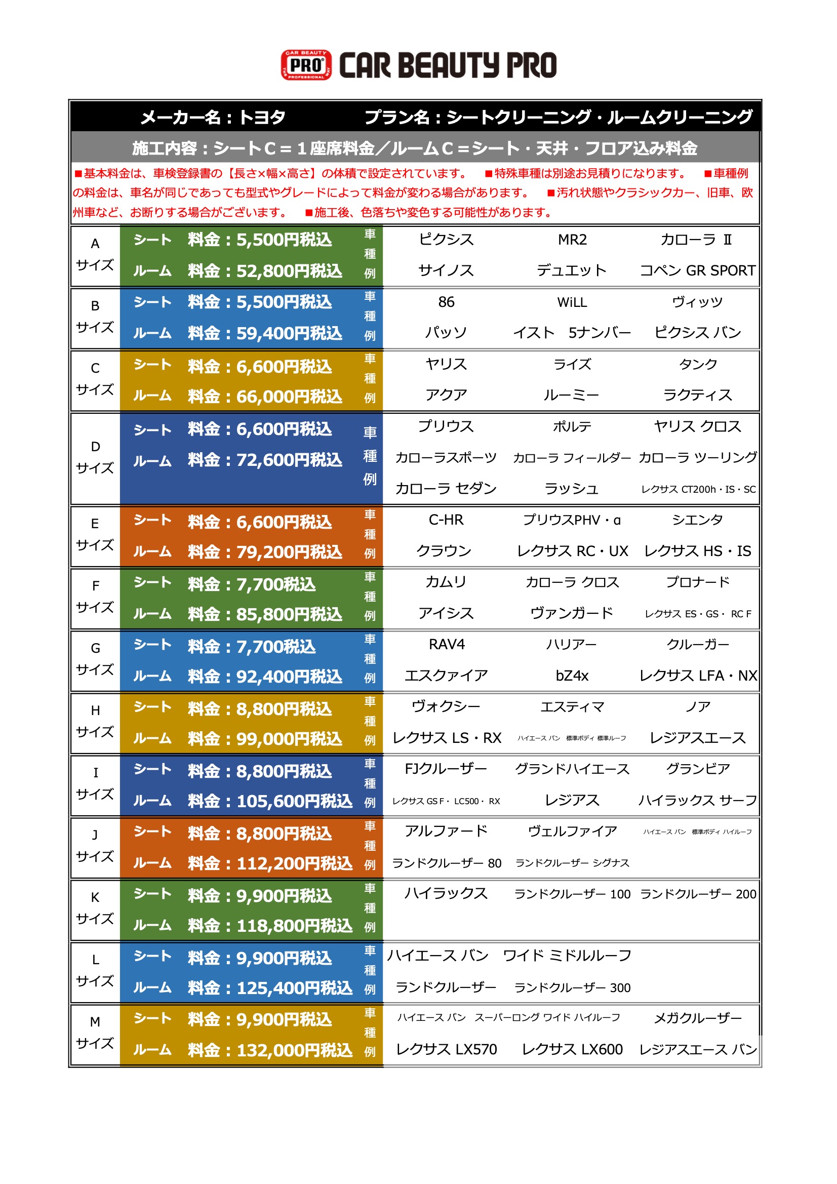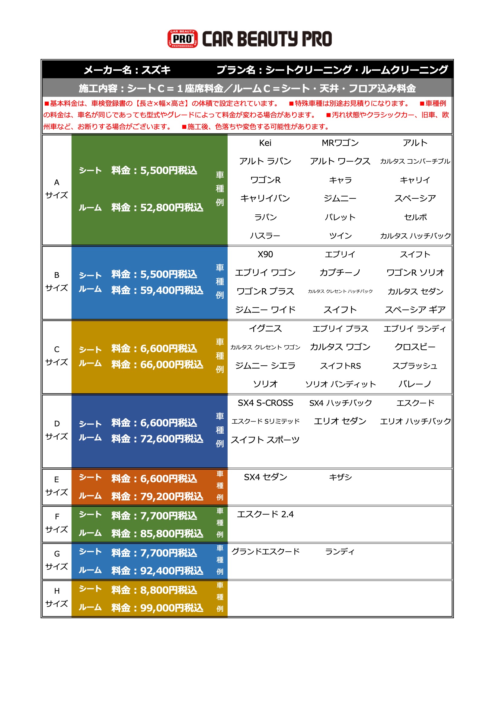 サービスの種類をお選びください プロコーティングプロEXE(エグゼ)コーティングプロEXE(エグゼ)プレミアムコーティングプロルームクリーニングプロ防錆コート(アンダーコート)プロ防錆コート(ボディコート)プロ防錆コート(フルコート)