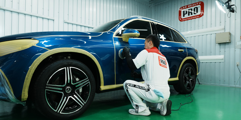 くすみや擦り傷を修復し、高濃度フッ素系コーティング剤で光沢や艶を生み出し、愛車が見違えるように綺麗になります。